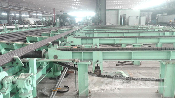 鋼管精整生產(chǎn)線包括從矯直工序開始到包裝入庫為止的矯直、吹灰、鋸切、探傷、人工檢驗、噴標、堆垛、打包整個工藝過程,是為了提高設(shè)備利用率降低設(shè)備投資,確保物流的暢通,減少生產(chǎn)過程中不必要的浪費。將原先分片、分區(qū)的單線生產(chǎn)作業(yè)進行連線布置,采用全自動化控制。將不合格、缺陷產(chǎn)品自動分選剔除單獨收集,各個單臺設(shè)備即可連線作業(yè)也可單獨作業(yè)。